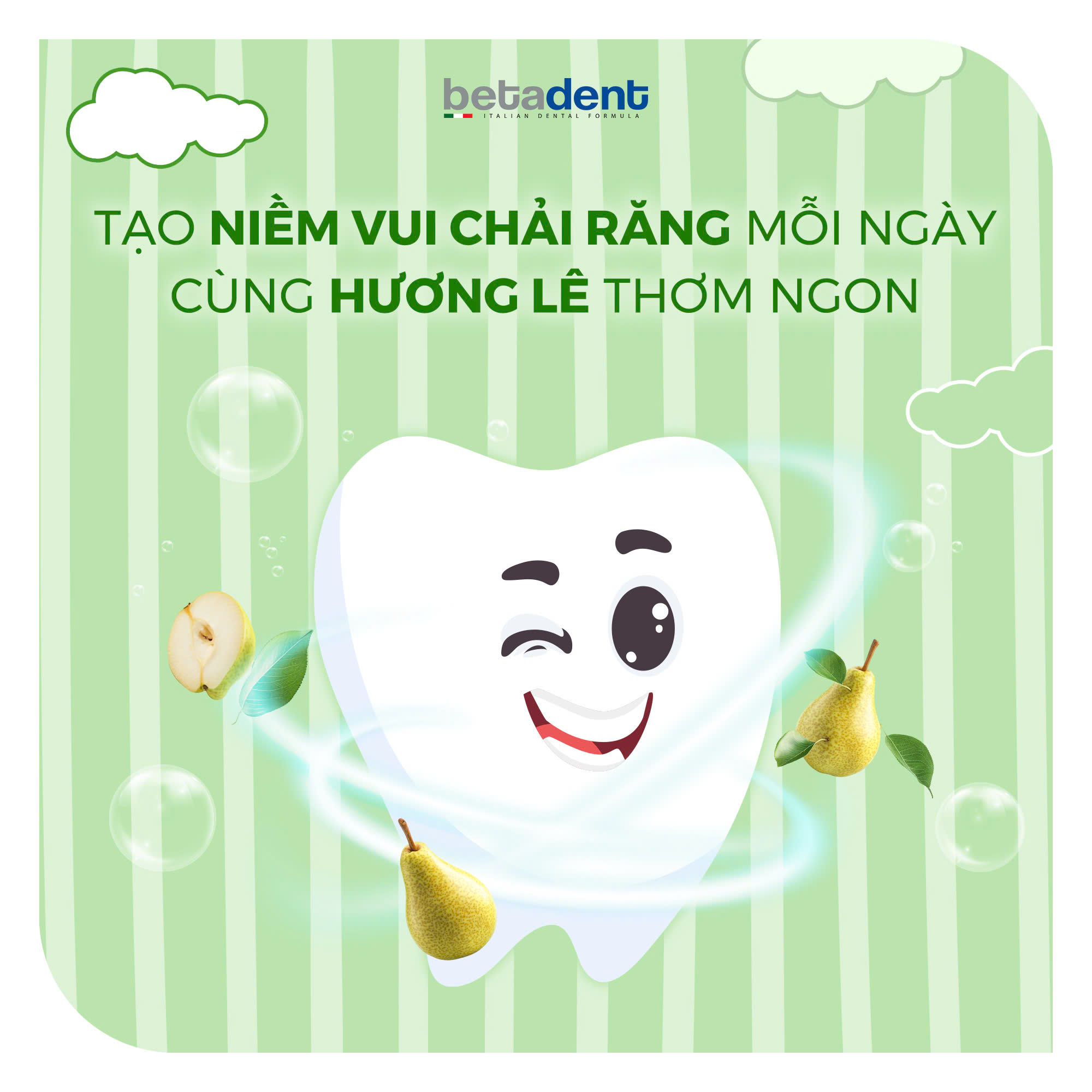 Hương vị lê tự nhiên thơm ngon mang đến trải nghiệm đánh răng thú vị, tạo niềm vui cho bé mỗi ngày.