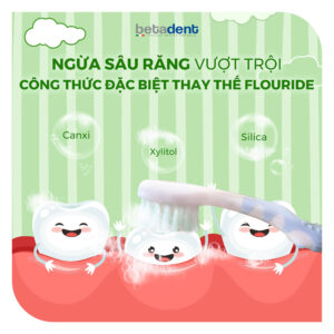 Sản phẩm không chứa fluoride, thay vào đó bổ sung bộ ba thành phần Canxi, Xylitol và Silica hỗ trợ ngăn ngừa sâu răng hiệu quả và bảo vệ răng sữa khỏe mạnh.