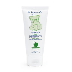 – Lấy lượng kem phù hợp: Cho một lượng nhỏ kem đánh răng Babycoccole (khoảng bằng hạt đậu) vào bàn chải đánh răng của bé.