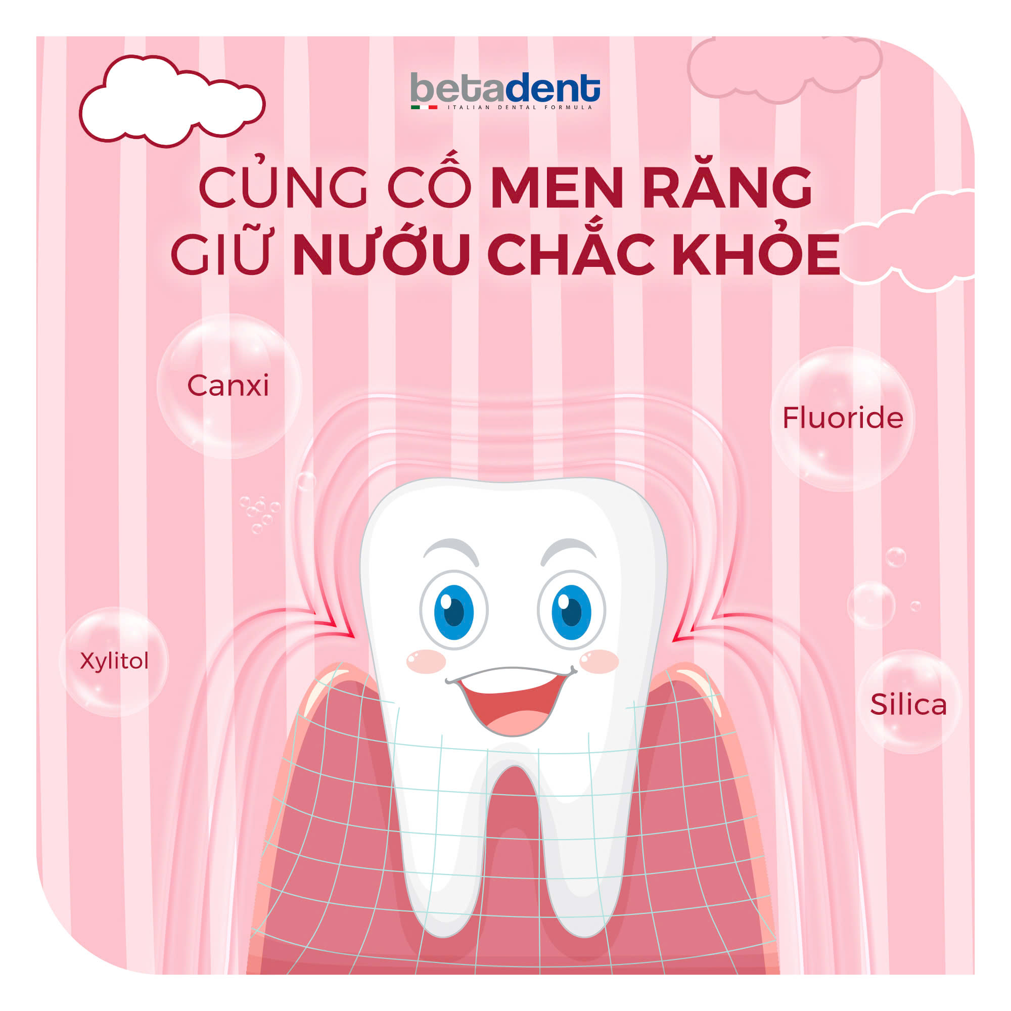 – Calcium Glycerophosphate: Góp phần tăng cường men răng, bảo vệ răng đang phát triển khỏe mạnh.