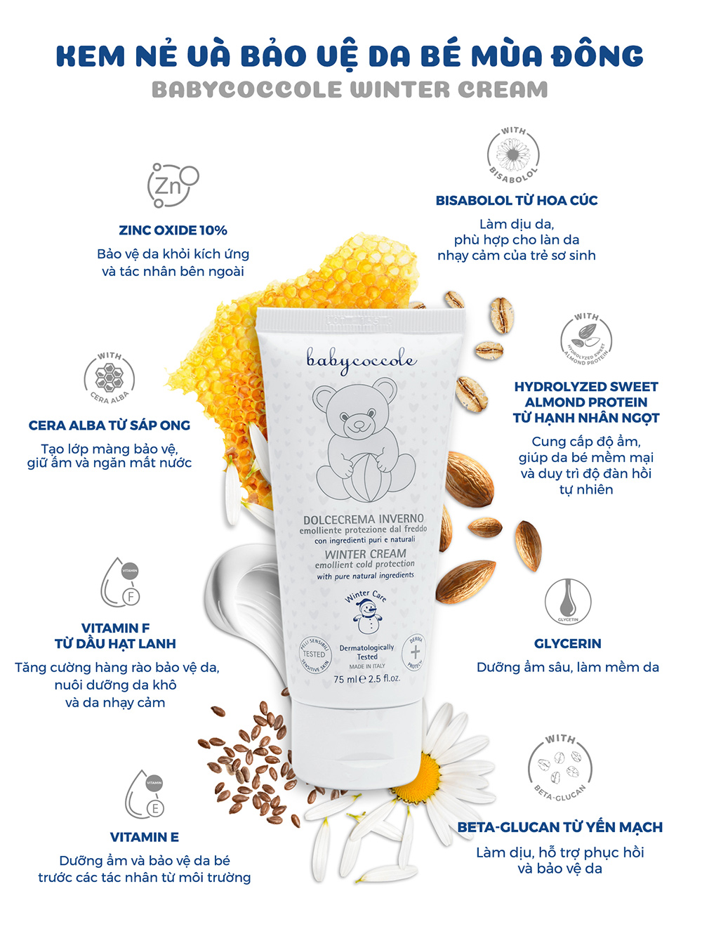 Bước 3: Massage nhẹ để kem thẩm thấu và tạo lớp màng giữ ẩm, giữ ấm cho da bé. Sử dụng 1–2 lần mỗi ngày hoặc bất cứ khi nào thấy da bé khô, bong tróc, ửng đỏ do lạnh.