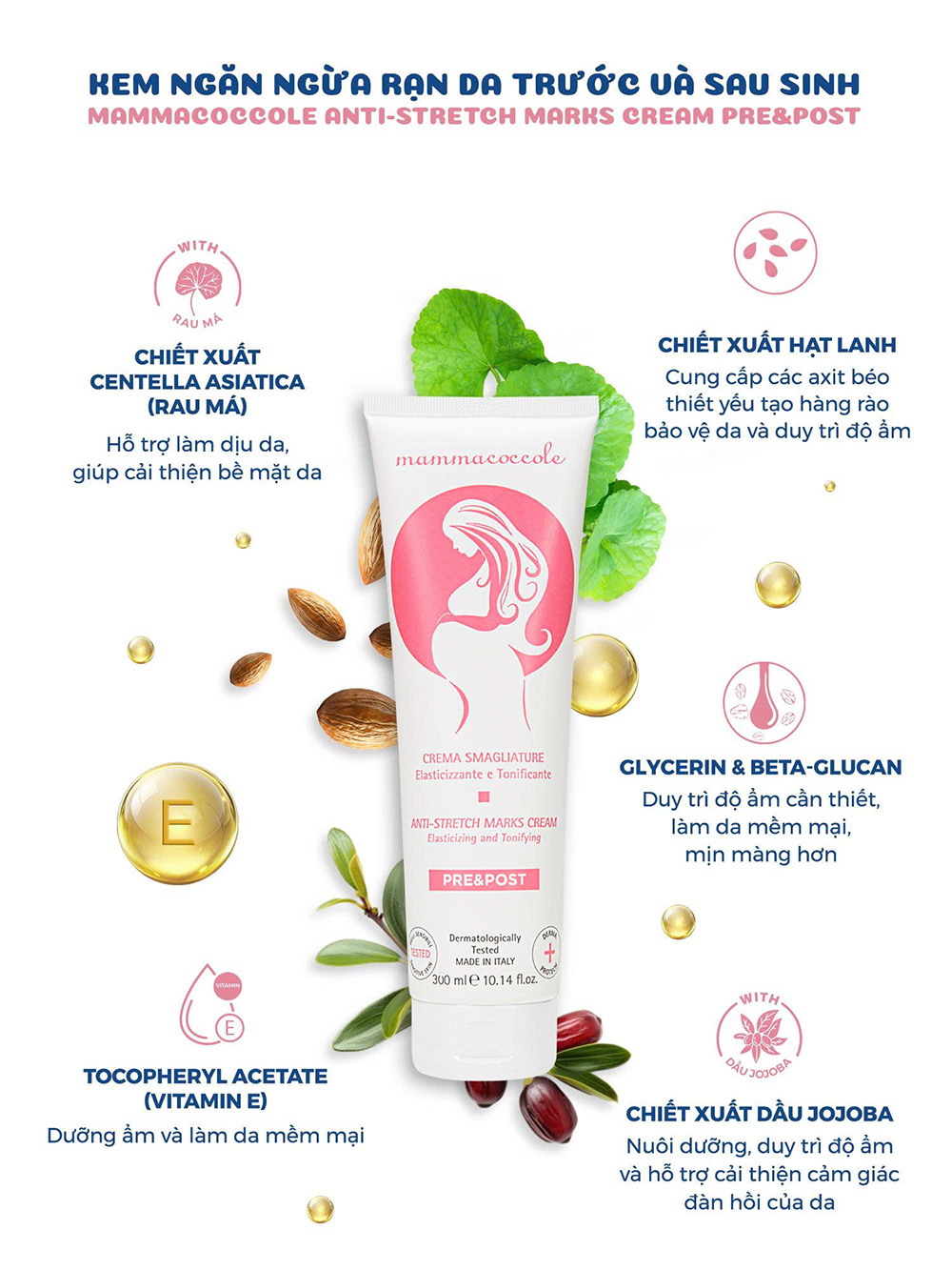 Kem ngăn ngừa rạn da trước và sau sinh Mammacoccole ANTI-STRETCH MARKS CREAM PRE&POST