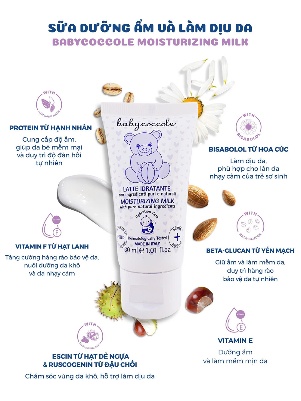 1. Sữa dưỡng ẩm Babycoccole là sự vuốt ve nhẹ nhàng, một làn da mềm mại, tươi mát, chứa đầy đủ tình yêu thương, sự âu yếm, nâng niu của mẹ dành cho bé: