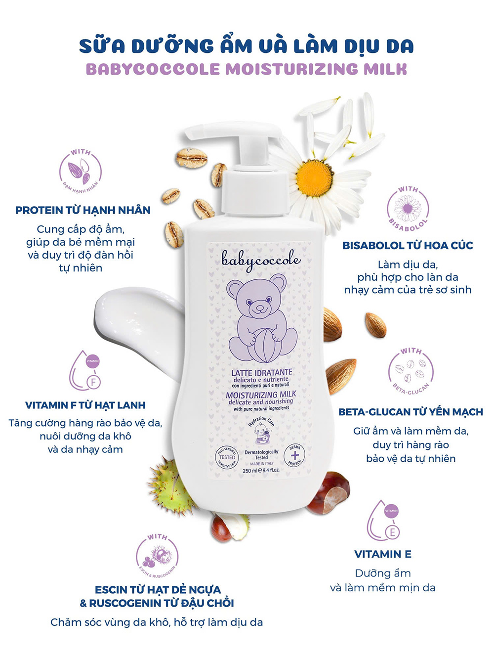 1. Sữa dưỡng ẩm Babycoccole là sự vuốt ve nhẹ nhàng, một làn da mềm mại, tươi mát, chứa đầy đủ tình yêu thương, sự âu yếm, nâng niu của mẹ dành cho bé: