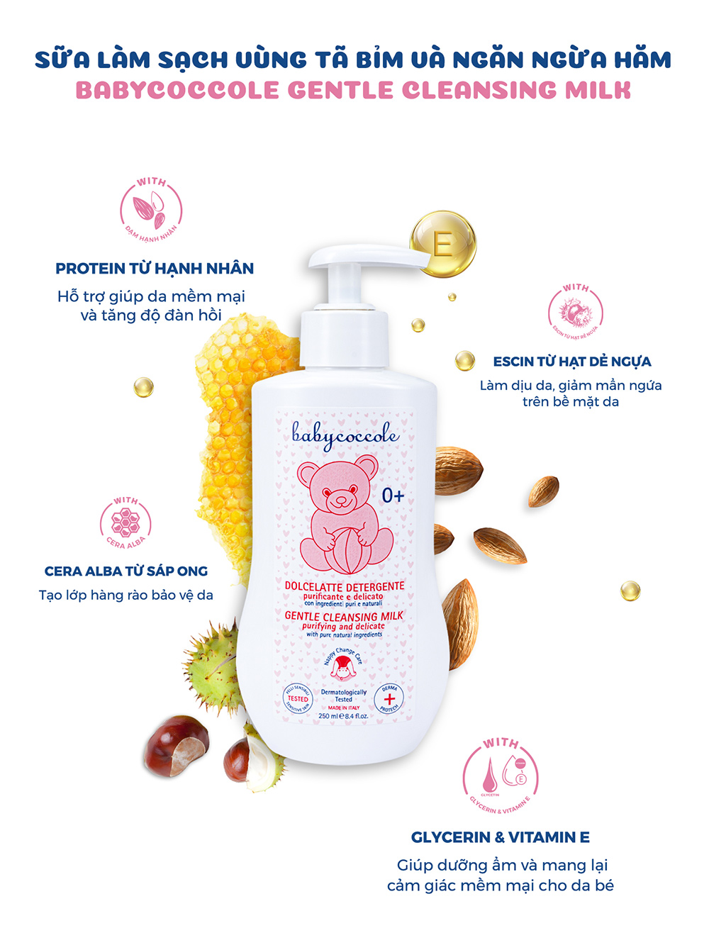 – Dưỡng ẩm nhẹ nhàng: Nuôi dưỡng làn da mềm mại và êm dịu, góp phần giữ cho vùng da tã luôn khô thoáng và dễ chịu.