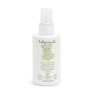 Bước 2: Cầm chai cách da bé khoảng 15–20 cm, xịt một lượng vừa đủ lên quần áo hoặc các vùng da hở như tay, chân, cổ (tránh vùng mắt, miệng và vết thương hở). Để xịt vùng mặt, mẹ có thể xịt ra tay người lớn rồi thoa nhẹ lên da bé.